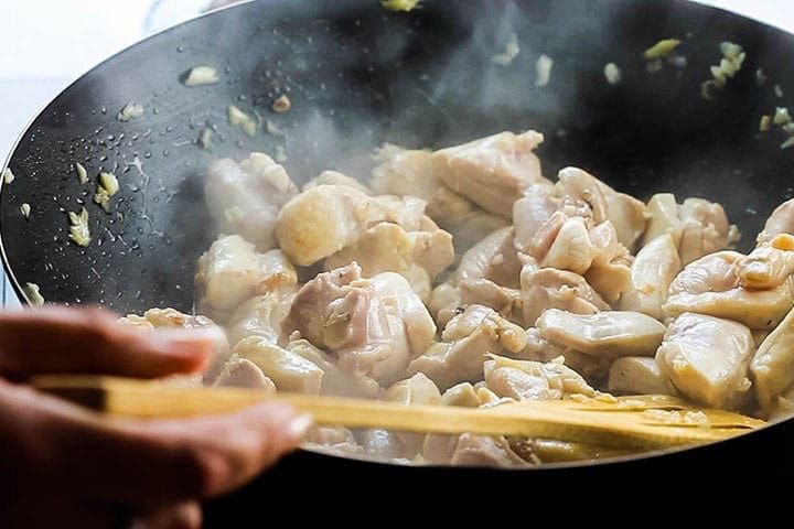 5. Cook the Chicken: Add the marinated chicken to the wok. Stir-fry until the chicken is no longer pink and is cooked through. Remove the chicken from the wok and set it aside.