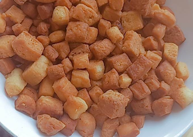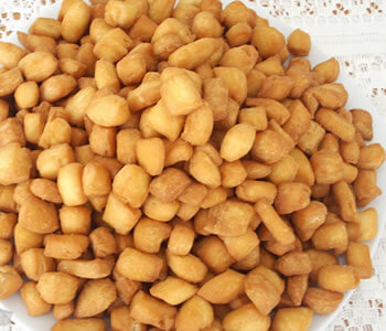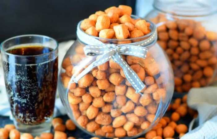 Chin Chin is basically deep-fried dough that is usually cut into small pieces and can be shaped into different forms. Chin Chin can be round, square, or triangle-shaped.